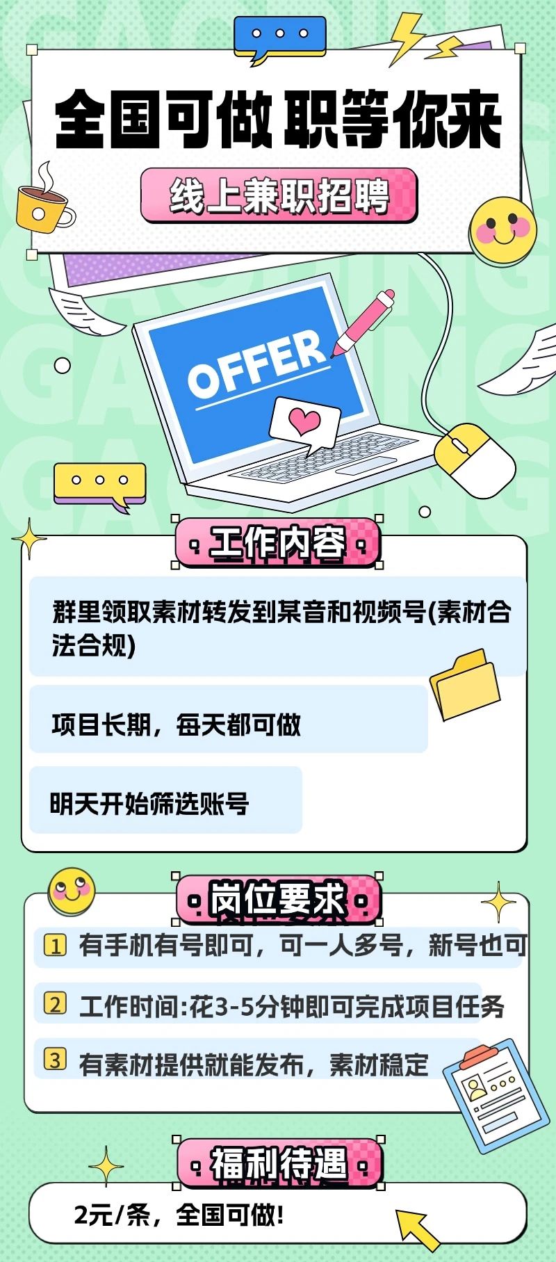 | 全国可做线上兼职:可月入200-400元,线上兼职种草员,项目稳定,可长期! |