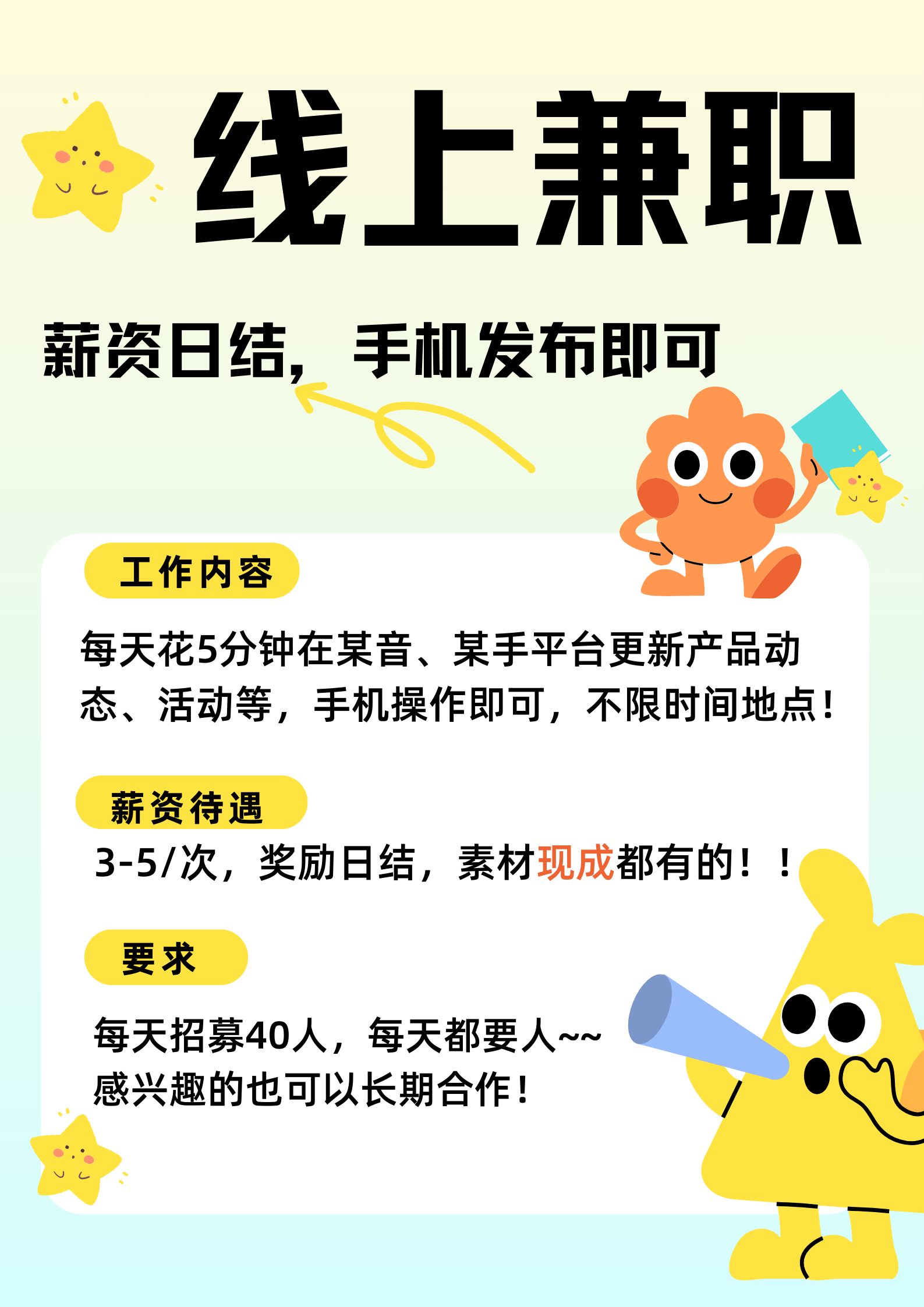 | 日结线上兼职,长期可做,轻松赚取100米 |